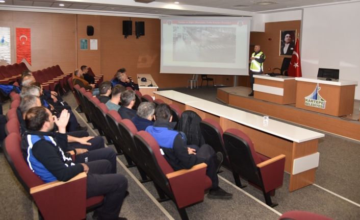 Kocaeli Valiliği’nin genelgesi doğrultusunda Kartepe Belediyesi personeline uygulamalı trafik eğitimi verildi. Eğitimde kış mevsiminde alınacak tedbirler anlatılırken, kamu bünyesinde görev yapan personellerin araç kullanımında örnek olmaları gerektiği vurgulandı.