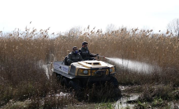 Sivrisineklerin üreyebilecekleri alanlarda çevre düzenlemeleri, sulak alan ve kanalların ıslahı, alt yapı sistemlerinde kontrolün sağlanması amacıyla da ilaçlama çalışmaları yapılıyor. 12 ilçede yapılan ilaçlama çalışmaları 20 araç, 1 adet Atv 8x8 amfibik araç, 57 uygulayıcı ve 5 kontrol mühendisi tarafından uygulanıyor. Sahada sivrisinek ağırlıklı karasinek, kemirgen ve diğer haşerelere karşı önleyici müdahale yapılıyor.