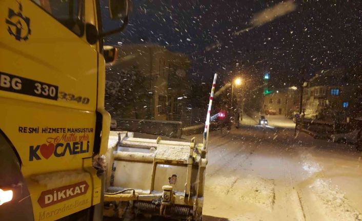 Kocaeli’yi etkisi altına alan yoğun kar yağışında yolların kapanmaması ve buzlanma sebebiyle kazalar yaşanmaması için çalışan karla mücadele ekipleri, ana arterler ve köy yollarında ulaşımı sağlandı. Kocaeli Büyükşehir Belediyesi, 12 ilçede 91 noktada 220 araç 650 personelle yolları sürekli açık tutuyor. 24 saat iki vardiya nöbet tutan karla mücadele ekipleri, Kocaeli’nin tüm ilçelerinde ve köy yollarında yol açma ve tuzlama çalışmaları yapıyor.