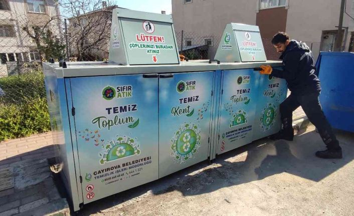 Çayırova Belediyesi, estetik görüntü için caddelere koruganlı çöp konteynerleri yerleştiriyor.