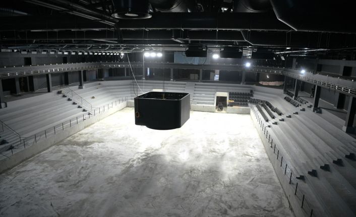 Tesiste, tribünlerdeki epoksi çalışmalarının bitmesinin ardından salon genelinde yalıtım, elektrik kablolama ve asansör montaj işlemleri de devam ediyor.
