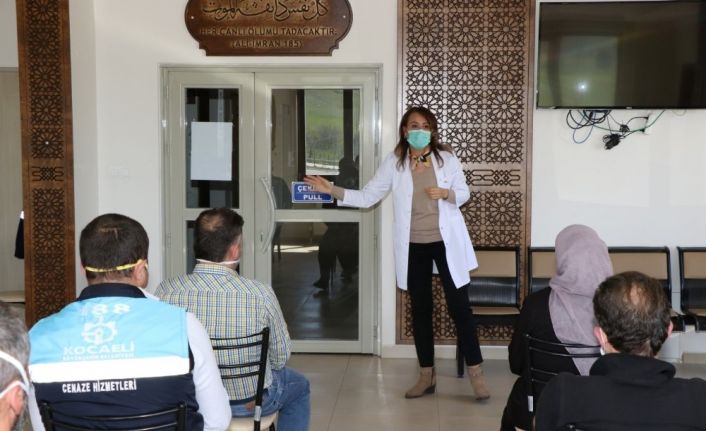 Kocaeli Büyükşehir Belediyesi cenaze hizmetleri personellerine korona virüsten vefat eden hayatını kaybedenlere yönelik uygulanacak kurallar hakkında eğitim verildi.