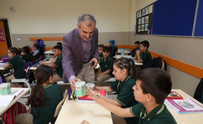 13 Ekim tarihleri arasında Prof. Dr. Necmettin Erbakan Kültür Merkezi’nde düzenlenecek olan kitap fuarı için öğrencilere kitap kumbarası dağıttı.
