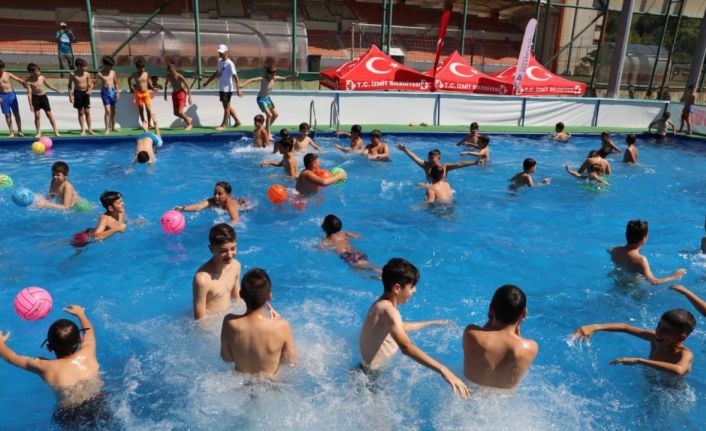 İzmit Belediyesi’nin Cephanelik Spor Tesisleri’nin yanında kurulumunu tamamlayarak çocukların hizmetine sunduğu portatif yüzme havuzu yoğun katılımla açıldı.