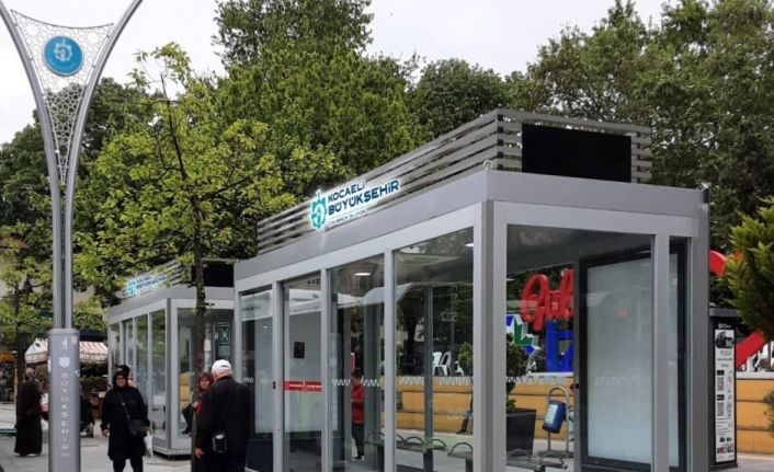 Kocaeli Büyükşehir Belediyesi vatandaşların konforu ve güvenliği için İzmit Cumhuriyet Parkına klimalı kapalı modern durak inşa edildi.