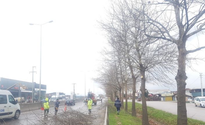 Kocaeli Büyükşehir Belediyesi, hafta sonu D-130 karayolu kenarında bulunan ağaçlarda bakım ve onarım çalışması yaptı.