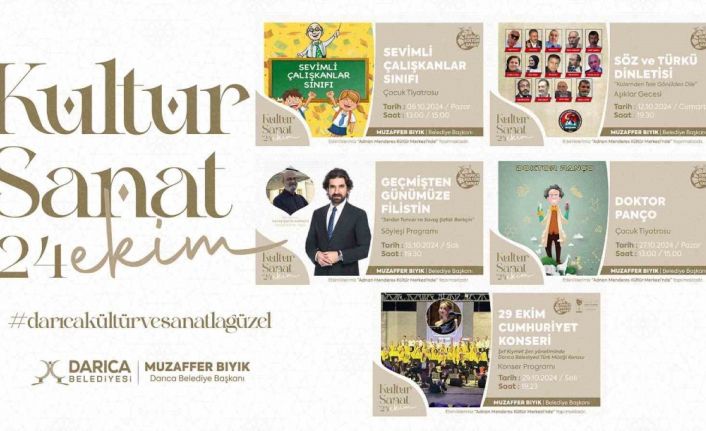 Darıca Belediyesi, ekim ayı kültür sanat takvimi açıkladı. Ekim ayı boyunca birrçok etkinlik sanatseverlerle buluşacak.
