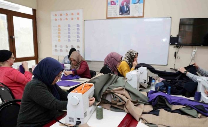 Kocaeli Büyükşehir Belediyesi Meslek ve Sanat Eğitimi Kurslarında (KO-MEK) eğitim alan kursiyerler, depremzedeler için kışlık kıyafet dikti.