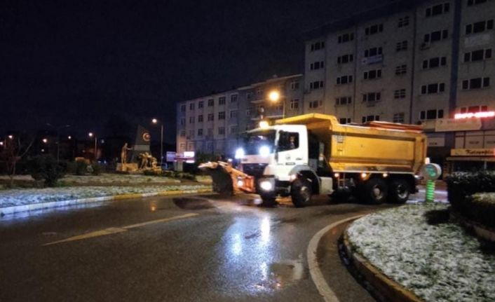 Derince Belediyesi ekipleri, dün gece saatlerinde başlayan kar yağışından vatandaşların olumsuz etkilenmemesi için çalışmalarını sürdürüyor.