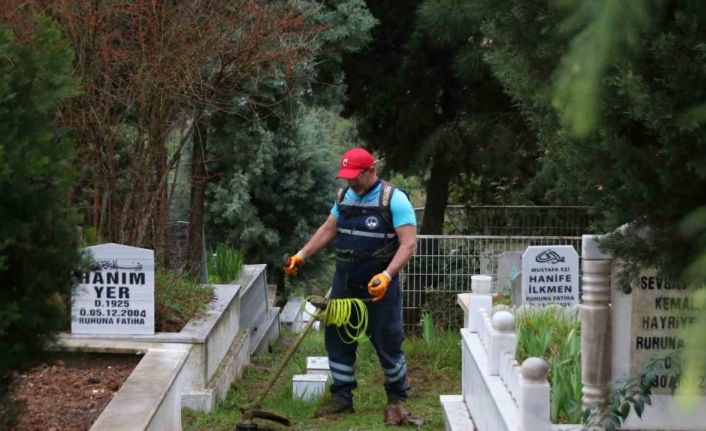 Derince’de Ramazan Bayramı öncesi mezarlıklarda temizlik ve bakım çalışmaları yapılıyor.