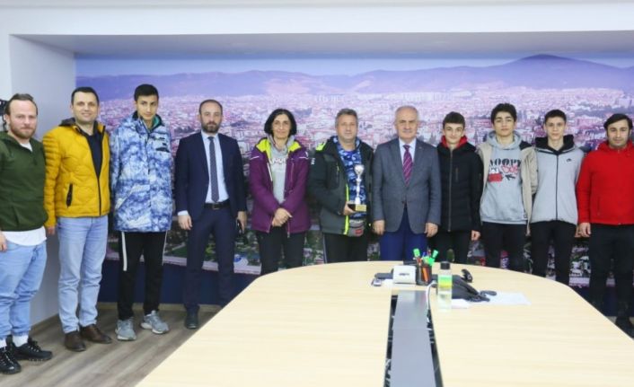 Derince Belediye Başkanı Zeki Aygün, Tarbzon’da Erkekler Salon 2. Lig Play Off karşılaşmalarında üçüncü olan Derincespor Çim Hokeyi Takımını konuk ederek tebrik etti.