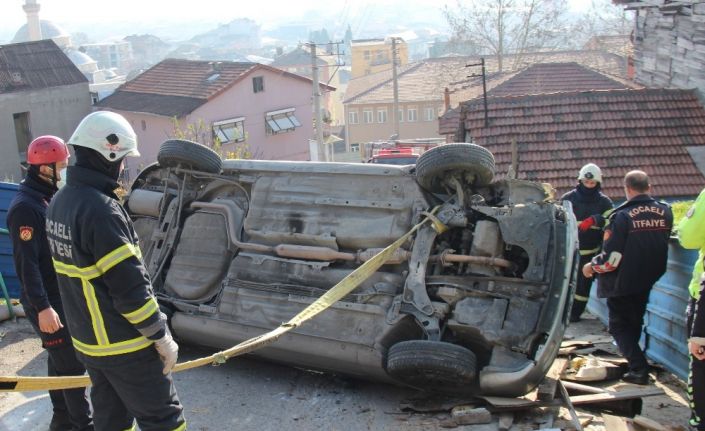 Kocaeli’nin İzmit ilçesinde yokuş aşağıya inerken kontrolden çıkarak yan yatan otomobilin sürücüsü, araçtan burnu bile kanamadan kurtuldu.