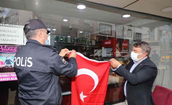 Dilovası Kaymakamı Metin Kubilay ve Dilovası Belediye Başkanı Hamza Şayir, Cumhuriyet Bayramı’nın 98. yıl dönümü dolayısıyla esnaf ve vatandaşlara Türk bayrağı hediye etti.