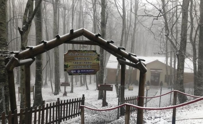 Kocaeli’nin Gölcük İlçesi’nde bulunan ve özellikle kış aylarında ziyaretçi akımına uğrayan Eriklitepe’de dün akşam kar yağışı başladı. Beyaza bürünen Eriklitepe Tabiat Parkı karpostallık görüntüler oluşturdu.