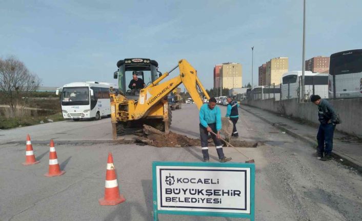 Gebze’de altyapı çalışmaları ve yoğun kar yağışının ardından bozulan yollarda çalışma yapılıyor.