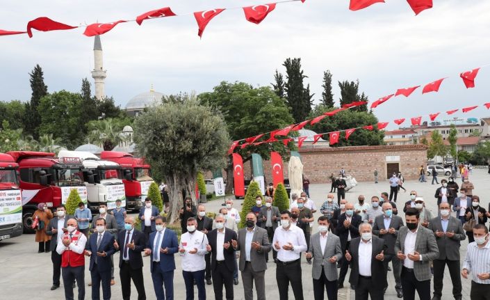 Gebze İlçe Müftüsü Selçuk Kılıçbay’ın okuduğu dualar sonrası yardım TIR’ları Suriye’ye doğru yola çıktı.