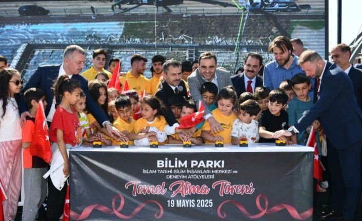 Bilim Parkı-İslam Tarihi Bilim İnsanları Merkezi ve Deneyim Atölyeleri Projesi’nin temel atma töreni, protokol üyelerinin ve sahneye çıkan çocukların butona basmasıyla sona erdi.
