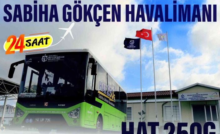 Kocaeli Büyükşehir Belediyesi’nin Sabiha Gölçen Havalimanına ulaşım sağlayan 250 ve 250G hatları 24 saat boyunca yolcu taşıyacak.