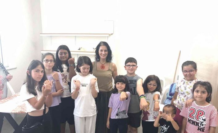 Çocukların yaz tatilini değerlendirmeleri amacıyla düzenlenen İZGİM Çocuk Atölyeleri’ne katılan minikler takı tasarım atölyesinde kendi el emeği takılarını tasarladı.