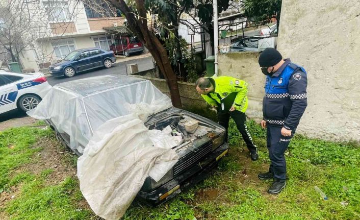 Körfez Belediyesi Zabıta Müdürlüğü ekipleri, ilçe emniyet müdürlüğü ekipleriyle beraber çürümeye terk edilen araçların oluşturduğu çirkin görüntüden dolayı çalışma başlattı.