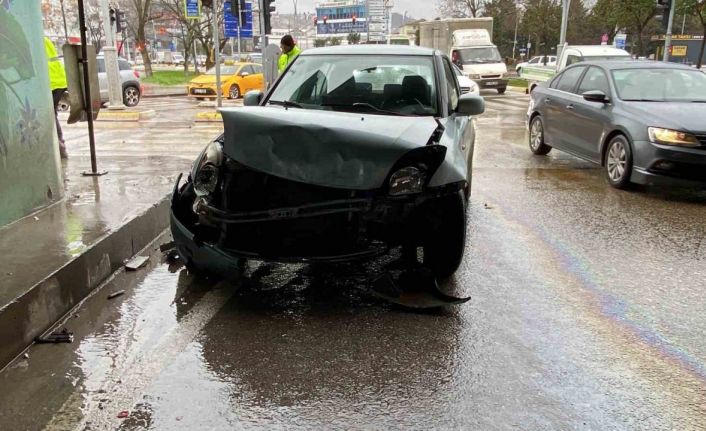 İki araç çarpıştı: Kopan parça yayayı yaraladı