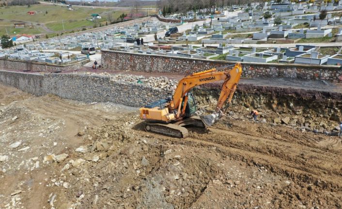 Kocaeli Büyükşehir Belediyesi, Körfez ilçesi İlimtepe mezarlığında taş duvar imalatı gerçekleştiriyor.