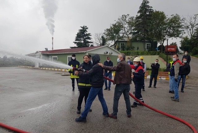 Yangınla mücadelede kullanılan yangın akımları ile genel hortum ve ekip çalışmalarının ağırlıkta olduğu eğitimde, İZAYDAŞ personellerinin becerileri gözlendi.