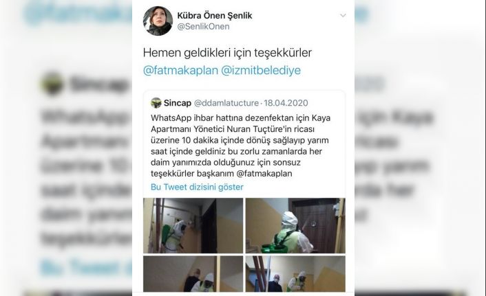 İzmit Belediyesi ekiplerinin virüsle mücadelesini fotoğraflayarak teşekkür etti