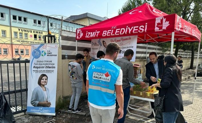 Üniversite sınavına giren adayları yalnız bırakmayan İzmit Belediyesi, okul önünde öğrencilere kek ve meyve suyu ikram ederek başarılar diledi.