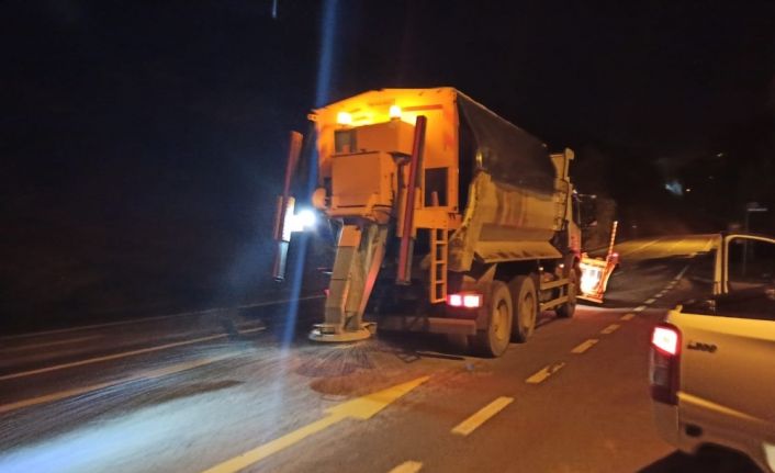 Kocaeli’de beklenen kar yağışı ile İzmit Belediyesi Fen İşleri Müdürlüğü ekipleri gece boyunca kar ve buzlanmaya karşı cadde ve sokaklarda çalıştı.