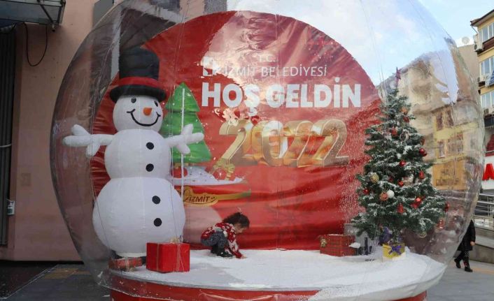 İzmit Belediyesi, geçmiş yıllarda olduğu gibi bu yılbaşı öncesinde de devasa kar küresini Belsa Plaza önüne getirerek vatandaşlar için renkli görüntüler oluşturdu.