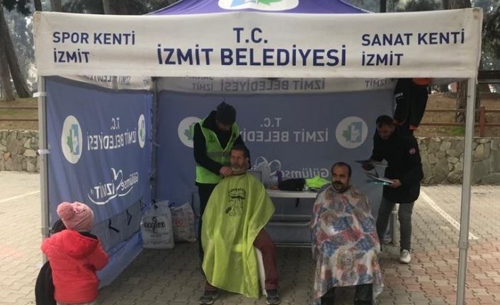 İzmit Belediyesi depremzedelere Kocaeli Berber ve Kuaförler Odası işbirliği ile ücretsiz hizmet vermeye başladı. Kocaeli’deki gönüllü beraber ve kuaförler, Hatay’ın Defne ilçesine giderek bölge halkının saç kesim ve bakımını gerçekleştiriyor. İzmit Belediyesi’nin standında depremzedelere hizmet veren kuaför ve berberler, bir süre daha çalışmalarını sürdürecek.