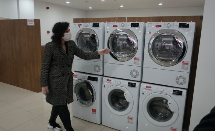 İzmit Belediyesi tarafından hastanede kullandıkları kıyafetleri eve götürmek istemeyen sağlık çalışanları için kurulan çamaşırhane hizmete başladı.