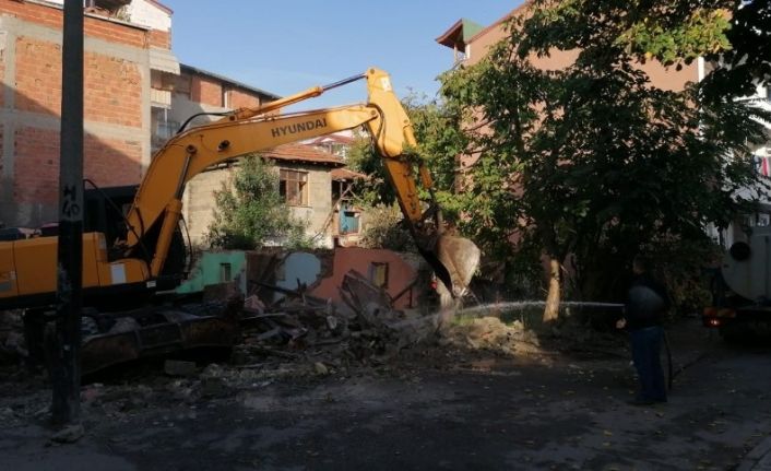 İzmit Belediyesi tarafından İzmit kent merkezinde yıkılma tehlikesi yaşayan 3 metruk bina yıkıldı.