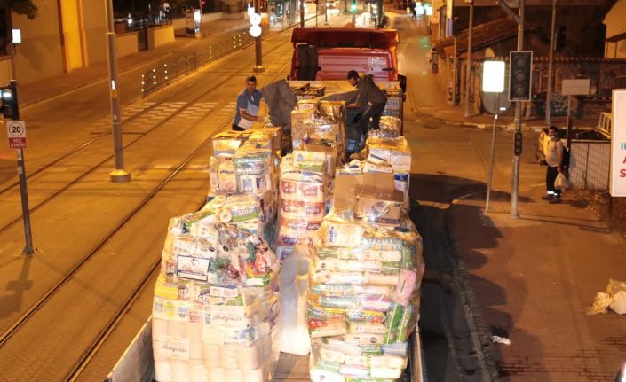 Antalya’nın Manavgat ilçesinde orman yangınları nedeniyle mağdur olan vatandaşların yanında olan İzmit Belediyesi, başlattığı yardım kampanyasında toplanan malzemeleri dün gece Manavgat’a gönderdi. Hayırseverlerin acil ihtiyaç listesine göre bağışladığı malzemeleri Gıda Bankası’nda toplayan, hijyenini sağlayan, tasnif eden ve paketleyen İzmit Belediyesi bugün de Muğla’ya yardım tırlarını gönderecek. İzmit Belediyesi destek kampanyasında yardımseverlerden topladığı; su, içecek, bebek bezi, bebek maması, bebek devam sütü, hijyenik ped, yanık kremi, ağrı kesici, konserve-paketli gıda, giysi, kolonya, ıslak mendil, peçete, tuvalet kağıdı, temizlik malzemeleri, kişisel bakım ürünleri, hayvan mamaları, ilkyardım malzemeleri, kürek, tırmık, baret, elektronik aletler, pil, el feneri gibi belirlenen acil ihtiyaçlardan oluşan ayni yardımları bölgeye sevk etti.