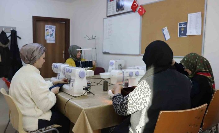 İzmit ilçesinde kadın kursiyerler deprem bölgesindeki çocuklara gönderilmek üzere eşofman takımı üretiyor.