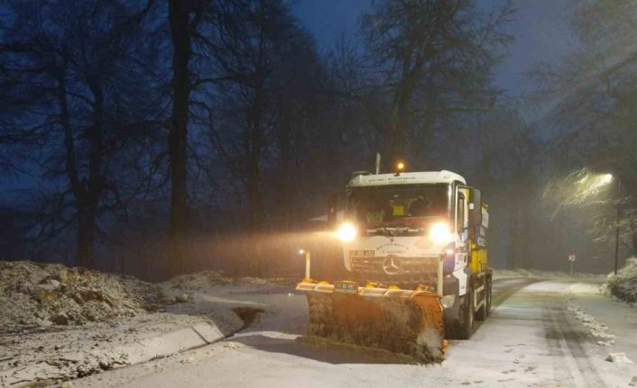 Kocaeli’de karla mücadele ekipleri, kar yağışının sürdüğü yüksek kesimlerde küreme ve tuzlama çalışmalarına aralıksız devam ediyor.