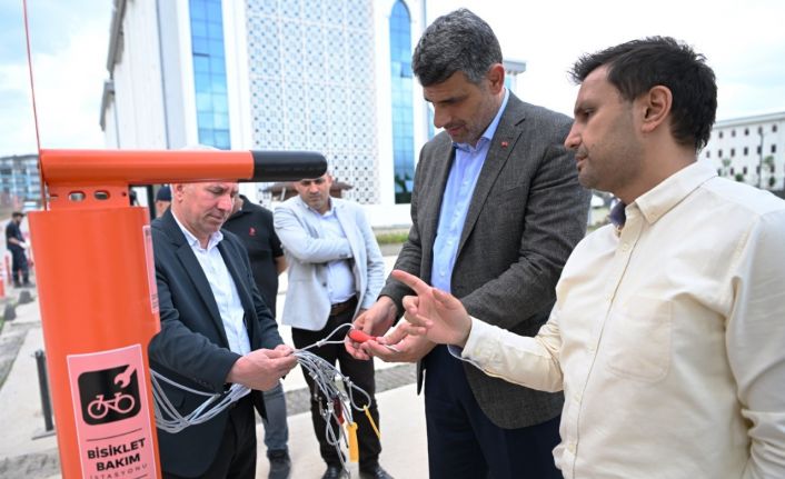 Bisiklet bakım istasyonlarını inceleyen Başkan Mustafa Kocaman, "Yaza sayılı günler kaldı. Kışlıklarımızı kaldıralım bisikletlerimizi dışarı çıkaralım. Hem zinde kalalım hem de doğamızı koruyalım. Yola çıkmadan önce yeni kurduğumuz bisiklet bakım istasyon noktalarımıza mutlaka uğrayarak kontrollerimizi yapalım" dedi.