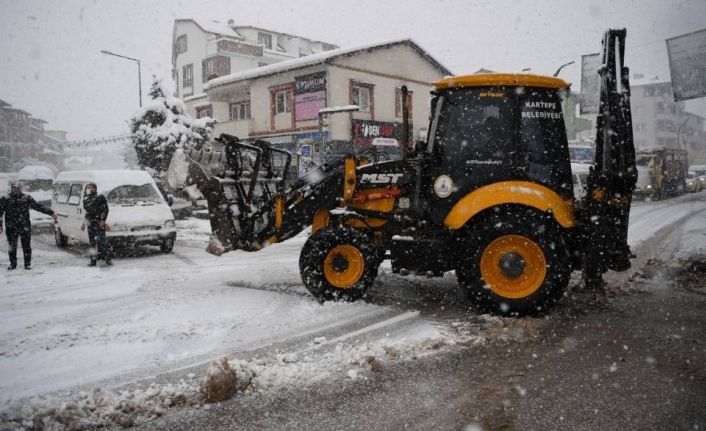 Kartepe Belediyesi ekipleri, kar yağışı sebebiyle ilçe genelinde olumsuzlukların yaşanmaması için çalışmalarını sürdürüyor.