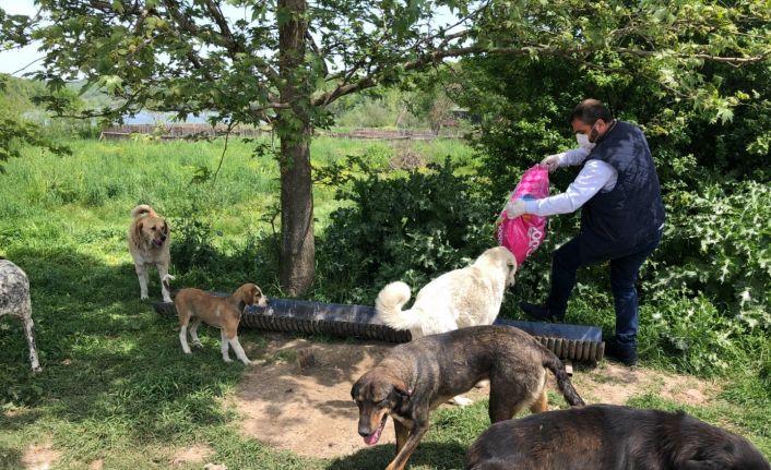 Kartepe Belediyesi, tam kapanma sürecinde yiyecek bulmakta zorlanan sokak hayvanları için belirlenen yerlere su ve mama bırakıyor.