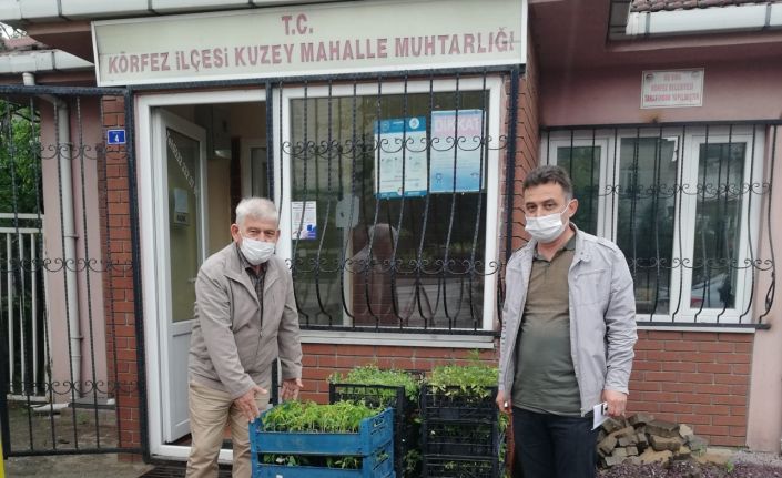 Körfez Belediyesi tarafından çiftçilere destek amacıyla dağıtılan fideler, köylerden sonra kent merkezindeki muhtarlara da teslim edildi.