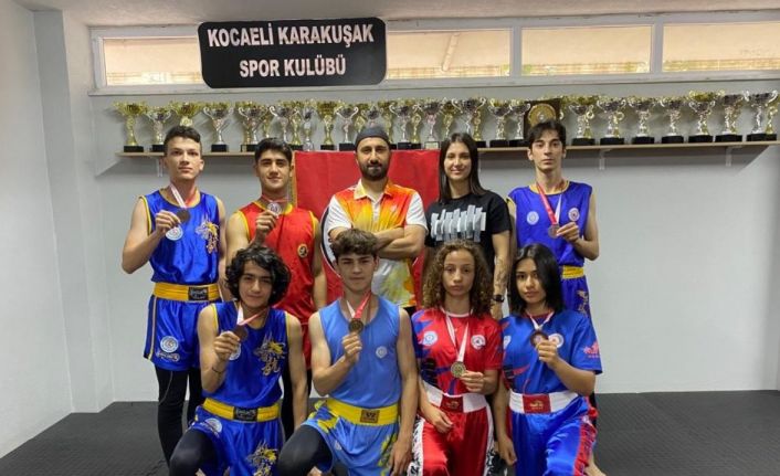 Sakarya’da düzenlenen Okullar Arası Wushu Sanda Türkiye Şampiyonası’na katılan Kocaeli Karakuşak Spor Kulübü’nün sporcuları, 7 madalya kazandı.
