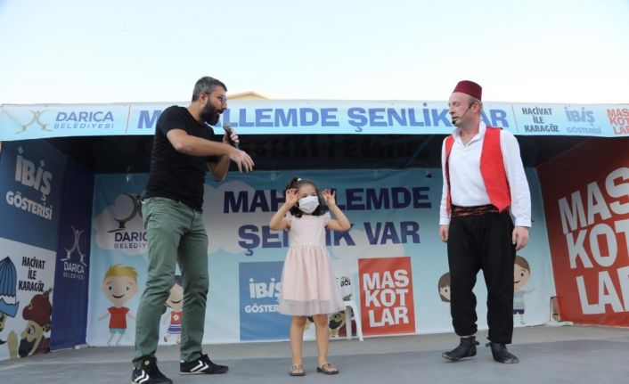 Darıca’da korona virüs salgınının yayılmasını önlemek amacıyla pandemi sürecinde tiyatro ve sinema salonlarının kapalı olması nedeniyle evlerinde sıkılan çocuklar şenlikle buluştu. “Mahallemde Şenlik Var” projesi kapsamında çocuk tiyatrolarını mahallelere taşıyan Darıca Belediyesi ilk tiyatro gösterisini Kazım Karabekir Mahallesi’nde gerçekleştirdi. Korona virüs tedbirleri kapsamında sosyal aktivitelerden uzak kalan çocuklar Karagöz-Hacivat ve çocuk tiyatrosu gösterilerini izlerken eğlenceli anlar yaşadı.