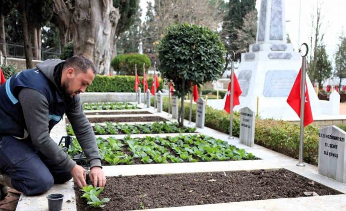Belediye ekiplerince yürütülen çalışmalar kapsamında, şehitliklerdeki peyzaj düzenlemeleri yenilendi. Mevsim şartlarından etkilenen ve kuruyan bitkileri temizleyen ekipler, toprak hazırlığının ardından alanlara mevsime uygun çiçeklerin ekimini yaptı.