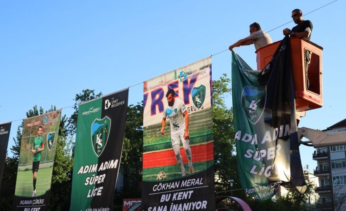 İzmit Belediyesi, TFF 2. Lig Play Off Yarı Final birinci maçında Trabzon Hekimoğlu ile karşılaşacak olan Kocaelispor’a destek olmak amacıyla kenti tüm futbolcuların yer aldığı “Bu kent sana inanıyor” bayraklarıyla donattı.