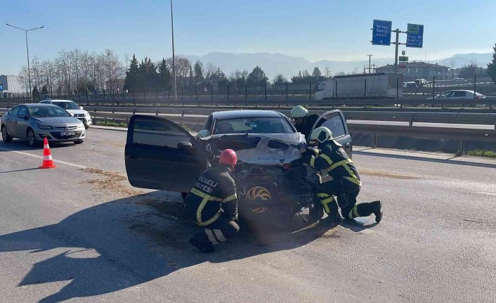 Kocaeli’de seyir halindeki bir otomobil aniden kontrolden çıkarak önce bariyerlere vurdu, sonra yola savruldu. Otomobil, motor kısmından aldığı darbe ile kullanılamaz hale geldi.