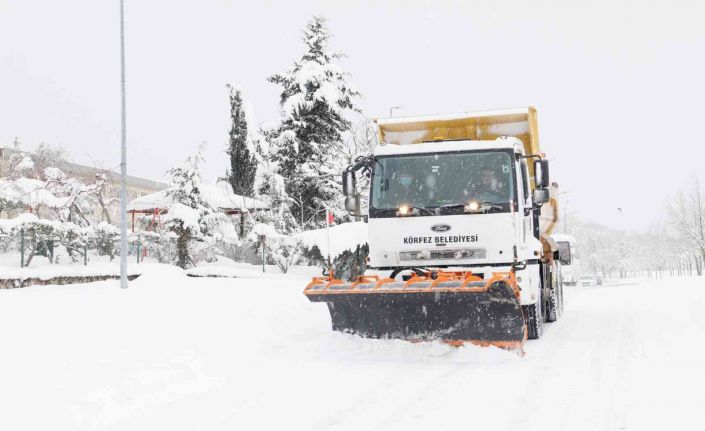 Körfez Belediyesi, kar temizleme çalışmalarına devam ediyor