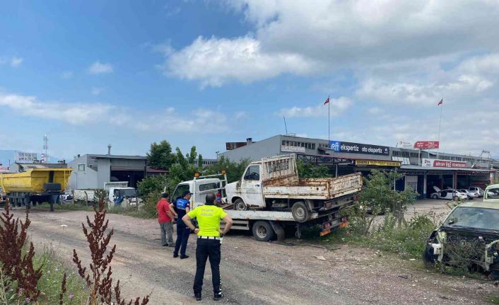 Körfez Belediyesi Zabıta Müdürlüğü ekipleri, ilçe genelinde hurda araçları kaldırıyor.