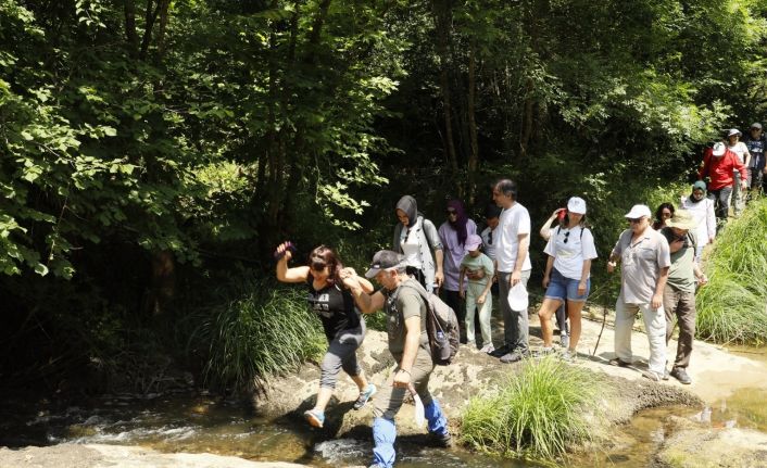 Körfez Belediyesi’nin köyler bölgesinde düzenlediği doğa yürüyüşü etkinliğine katılan sağlık çalışanları stres attı.