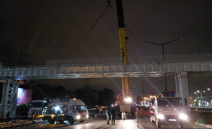 İzmit Kuruçeşme Tramvay Hattı projesi kapsamında ilk yaya üstgeçidinin montajı hafta sonu gece mesaisinde yapıldı.